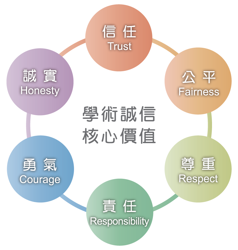 學術誠信(Academic Integrity)作為「發現知識、藝術創作、獨立研究以及有意義的協同合作的基礎」(Harvard University, 2019),無論是學生、教師、研究人員等應該堅持遵守學術誠信的原則。國際學術誠信中心(The International Center for Academic Integrity, 2021)將學術倫理定義為「即使在逆境或困難中,仍然能夠堅持誠實、信任、公平、尊重、責任、勇氣六項基本價值觀的承諾」,基於此六項核心價值觀所產生的行為,正是使得學術環境更能精進成長的主要因素。許多國內外大學如麻省理工學院、哈佛大學、香港大學等亦根據此六項核心價值提出屬於該校的學術誠信規範,期望所有人皆能遵守其規範,共同維護良好的學術環境。(The International Center for Academic Integrity, 2021; Massachusetts Institute of Technology, 2016; UK Research Integrity Office, 2009)